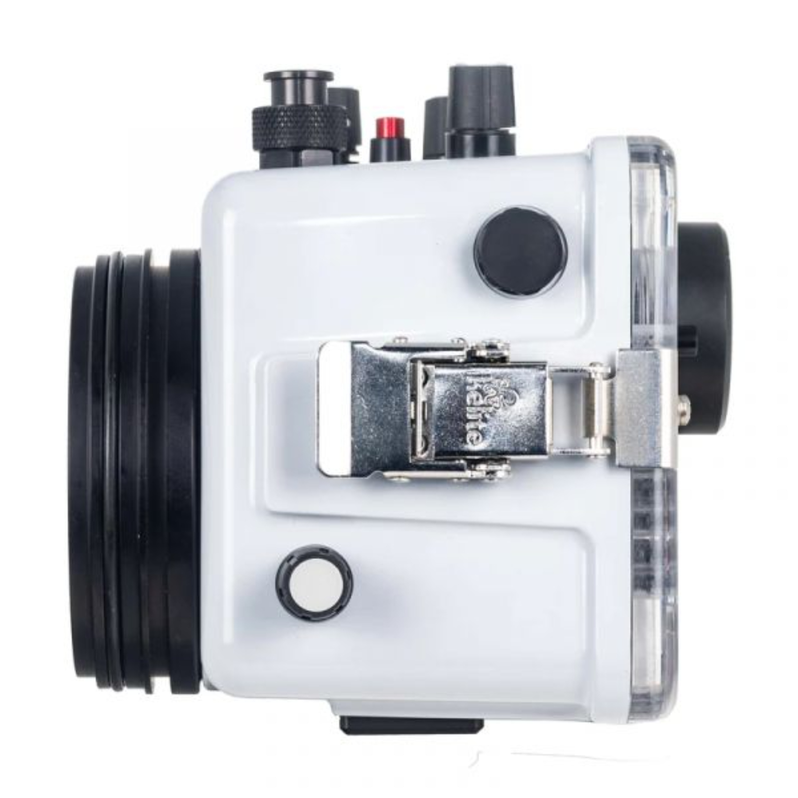 An integrated Fiber Optic TTL transmitter communicates the camera’s flash signals to compatible Ikelite fiber optic strobes, enabling seamless automatic flash exposure — with easy in-camera adjustment of flash compensation. The housing’s signature open-groove O-ring design allows you to visually confirm the seal before you dive, and the vacuum leak detection system lets you check watertight integrity in advance. Ergonomic controls provide access to nearly all camera functions underwater, and the housing supports a broad range of Ikelite DLM (Dry Lock Micro) lens ports (sold separately) to match your preferred lenses for wide-angle, zoom, or macro work.